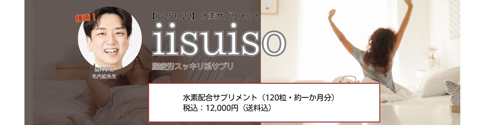 iisuisoは、脳科学者・毛内拡先生(神経科学博士/ホンマでっか!?TV 出演)からも注目されている製品です。